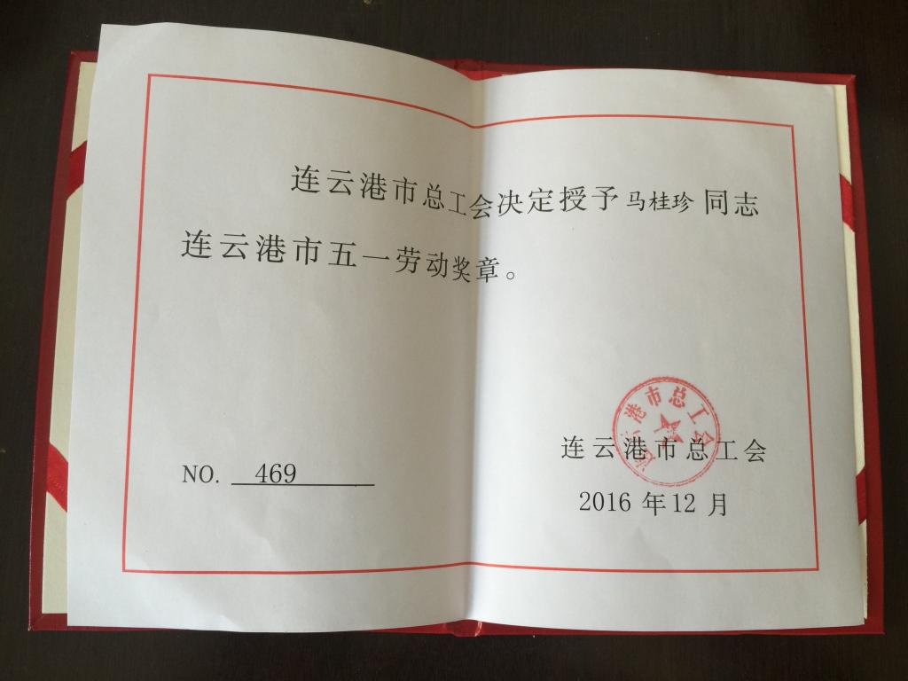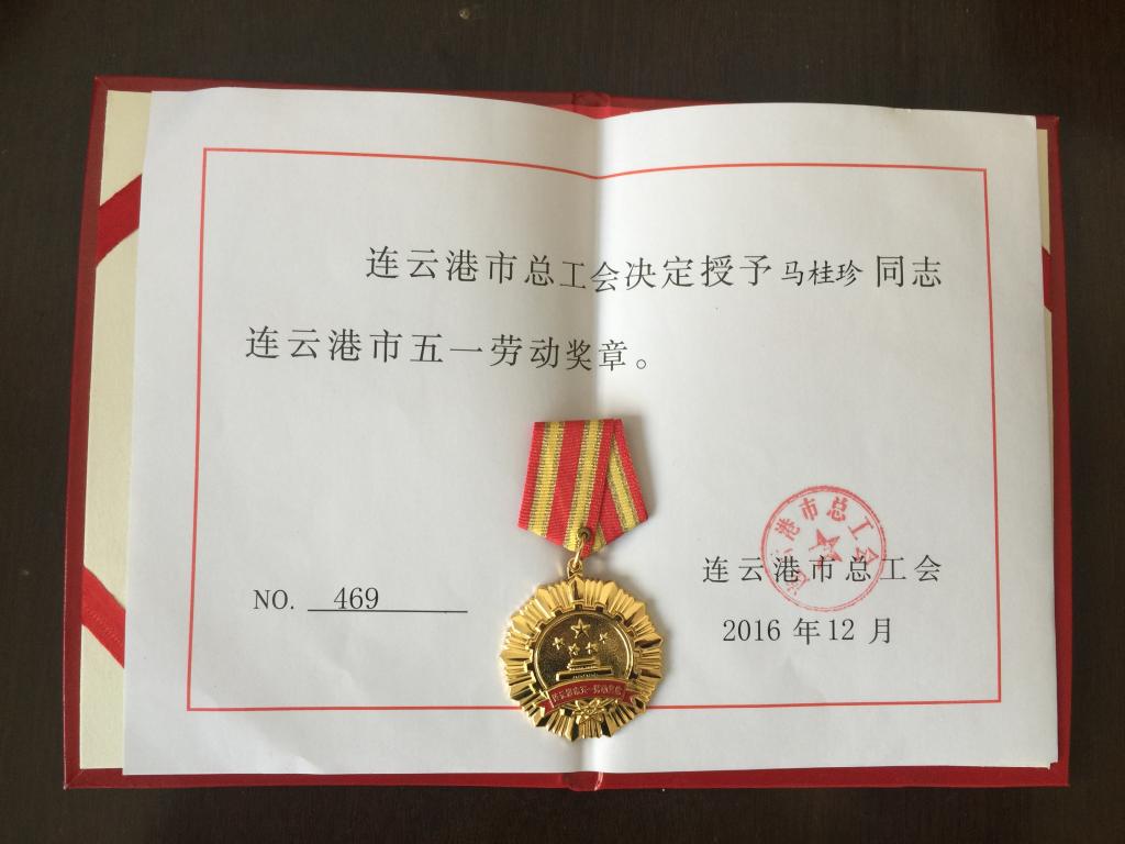 近日,连云港市总工会下发了《关于授予全市劳动竞赛先进集体和先进个人连云港市五一劳动奖的决定》,我校马桂珍荣获连云港市“五一劳动奖章”称号。