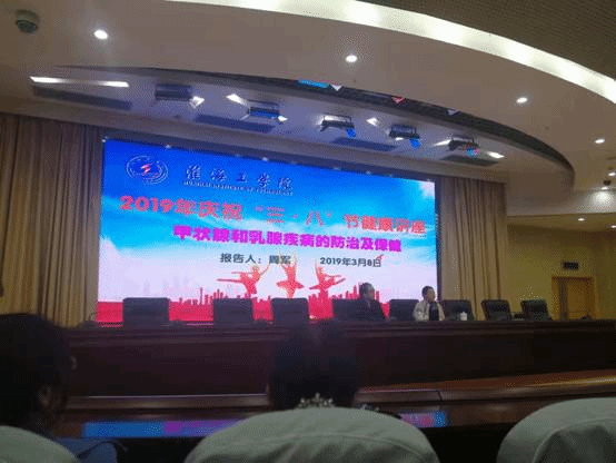 3月8日下午四点,为关爱女教职工的身体健康,助力学校事业发展,校工会在2019年“三.八”节来临之际,特别邀请江苏省连云港市第一人民医院甲乳外科科主任、甲乳腺疾病(癌)防治专家周军教授到学校会议中心黄海厅给全校女教职工做健康讲座。