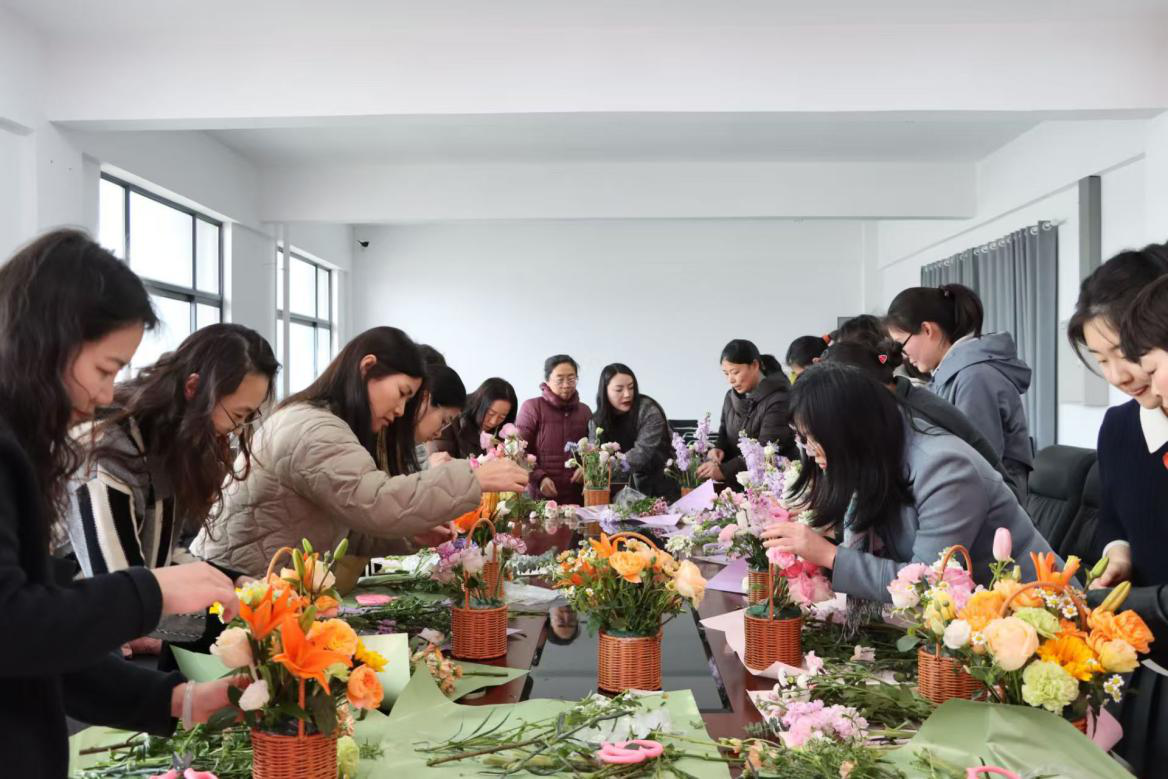 当天下午,测绘楼508里,“灼灼芳华绽巾帼力量,馥郁馨香盈美丽校园”主题插花活动也正如火如荼地进行着。学院党委副书记(主持工作)司成伟、工会主席田扬启亲临现场,与全体女教职工共同参与活动。司成伟满送上节日问候,对女教职工们在工作和生活中的辛勤付出表达了诚挚感谢,同时激励大家继续发扬巾帼精神,为学院发展添砖加瓦。紧接着,专业花艺师带领女教职工们动手创作插花。一时间,玫瑰、康乃馨、百合等花材在她们手中巧妙组合,现场花香弥漫,欢声笑语不断,大家在交流互动中,艺术修养得到提升,彼此情谊也愈发深厚。