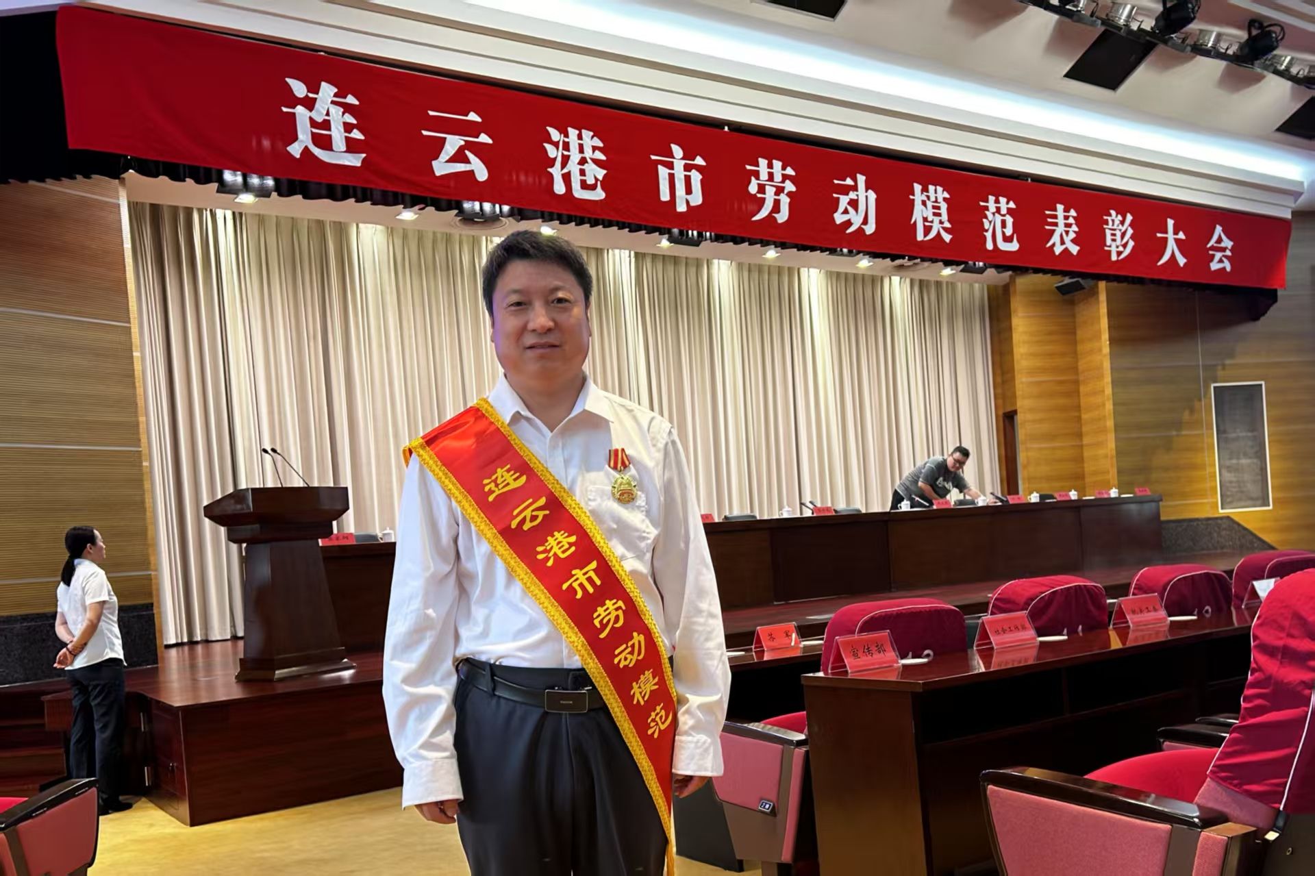 6月27日上午,连云港市委、市政府隆重召开全市劳动模范表彰大会。经过严格评审和层层选拔,我校董志国教授凭借突出的科研创新成果、卓越的学术贡献和无私奉献的育人精神,荣获“连云港市劳动模范”荣誉称号。