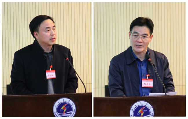 组织部部长尹德树作《代表资格审查报告》、校工会主席万洁作《工会工作报告》