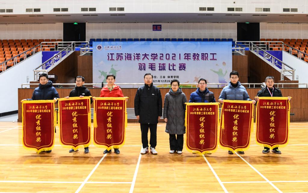 12月26日,“江苏海洋大学2021年教职工羽毛球比赛”在本部体育馆隆重举行。本次比赛由校工会和体育学院主办。王自力书记亲临现场观摩比赛,校长宁晓明、副校长李梅英亲自参加比赛并为获奖选手颁奖。
