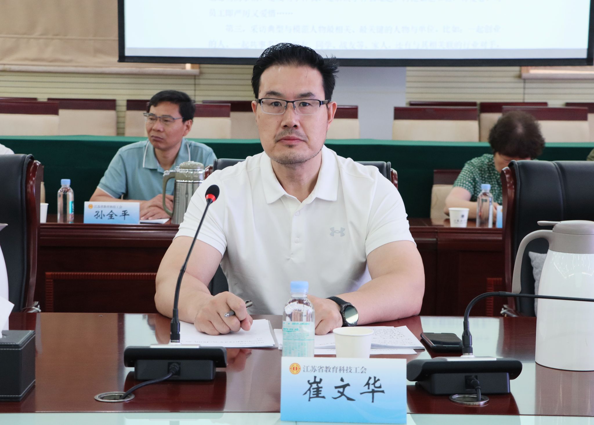 此次培训由江苏省教育科技工会主办、江苏海洋大学工会承办。来自全省各设区市教育工会、直属高校、大中专院校、科研院所等讲师团、宣讲团成员40余人参加培训,江苏省教育科技工会副主席崔文华主持培训并做开班动员讲话。