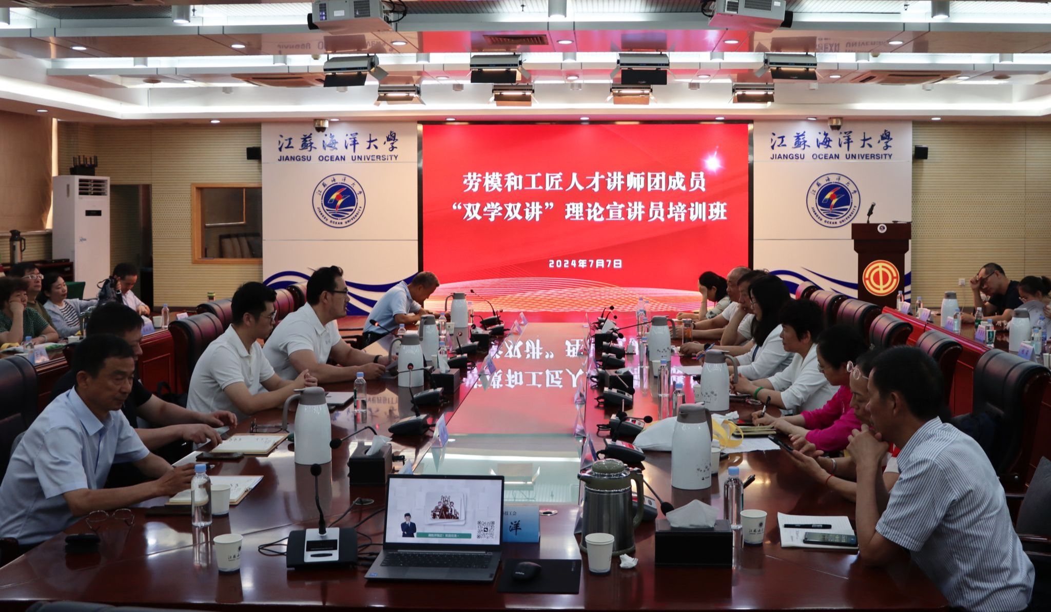为深入学习贯彻习近平新时代中国特色社会主义思想和党的二十大精神,大力弘扬劳模精神劳动精神工匠精神。进一步讲好讲活劳模故事、工匠故事,不断提升“双进”活动实效,7月5日-7日,江苏省教科工会劳模和工匠人才讲师团成员、“双学双讲”理论宣讲员培训班在江苏海洋大学举办。