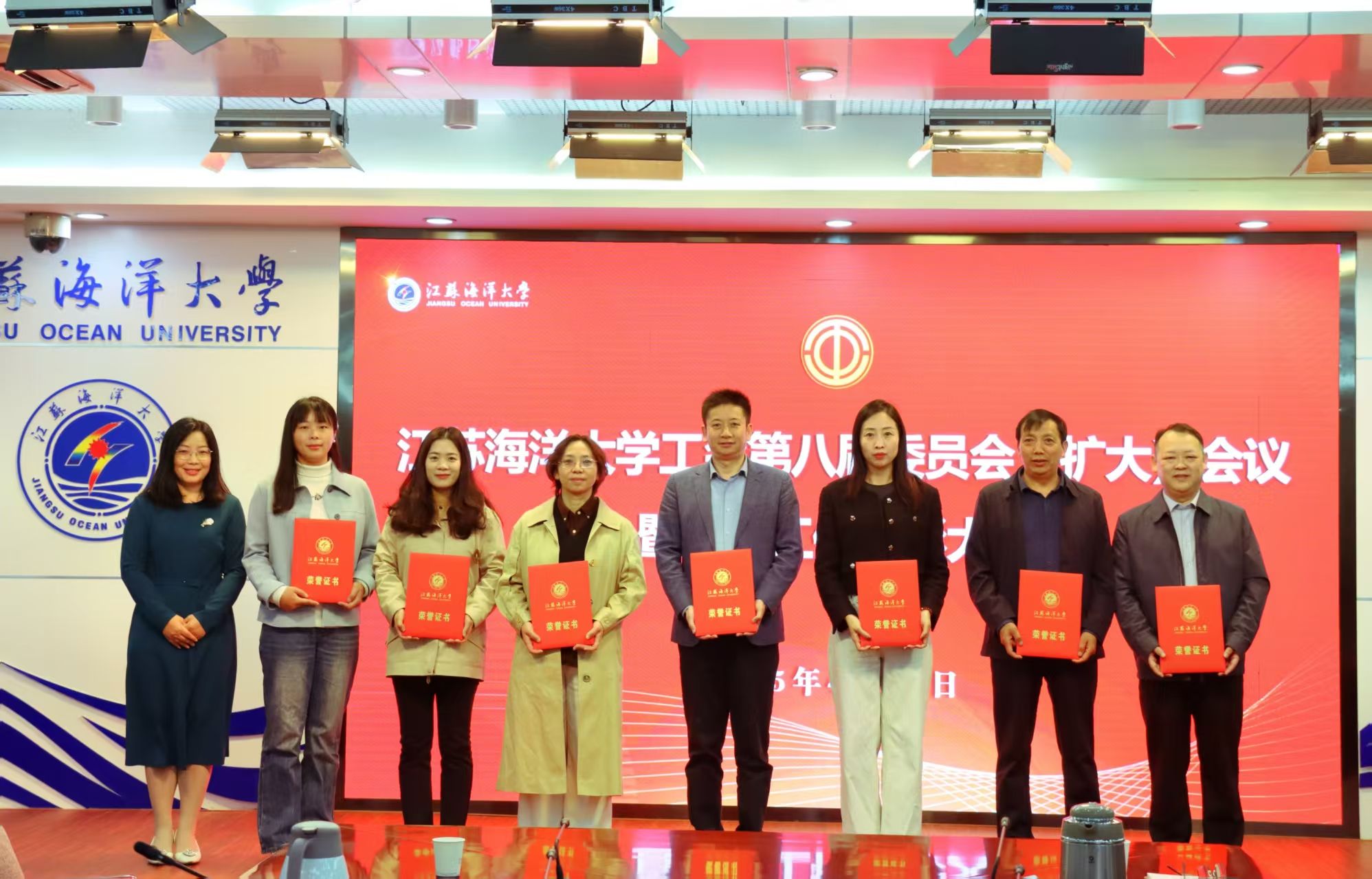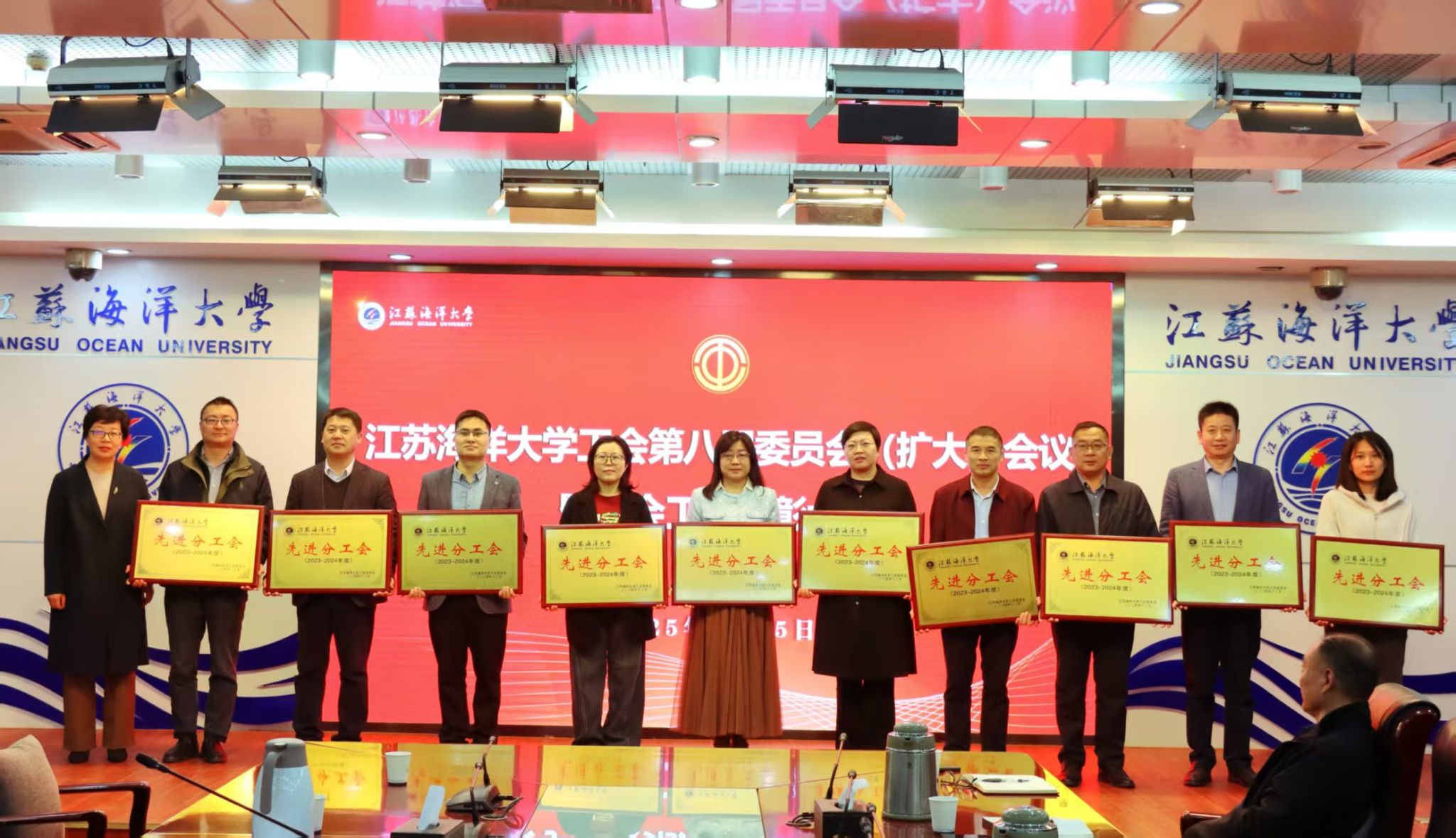 会上,对2022-2023年度工会工作先进集体和个人进行表彰。李梅英、王晶分别为获奖集体和个人颁发荣誉证书。会议审议了《江苏海洋大学工会第八届委员会工作报告》,与会委员就报告的框架及内容细节提出建设性意见。会议表决通过了《关于调整校内合同制员工会费缴纳标准的方案》,体现学校对广大合同制员工的关怀。