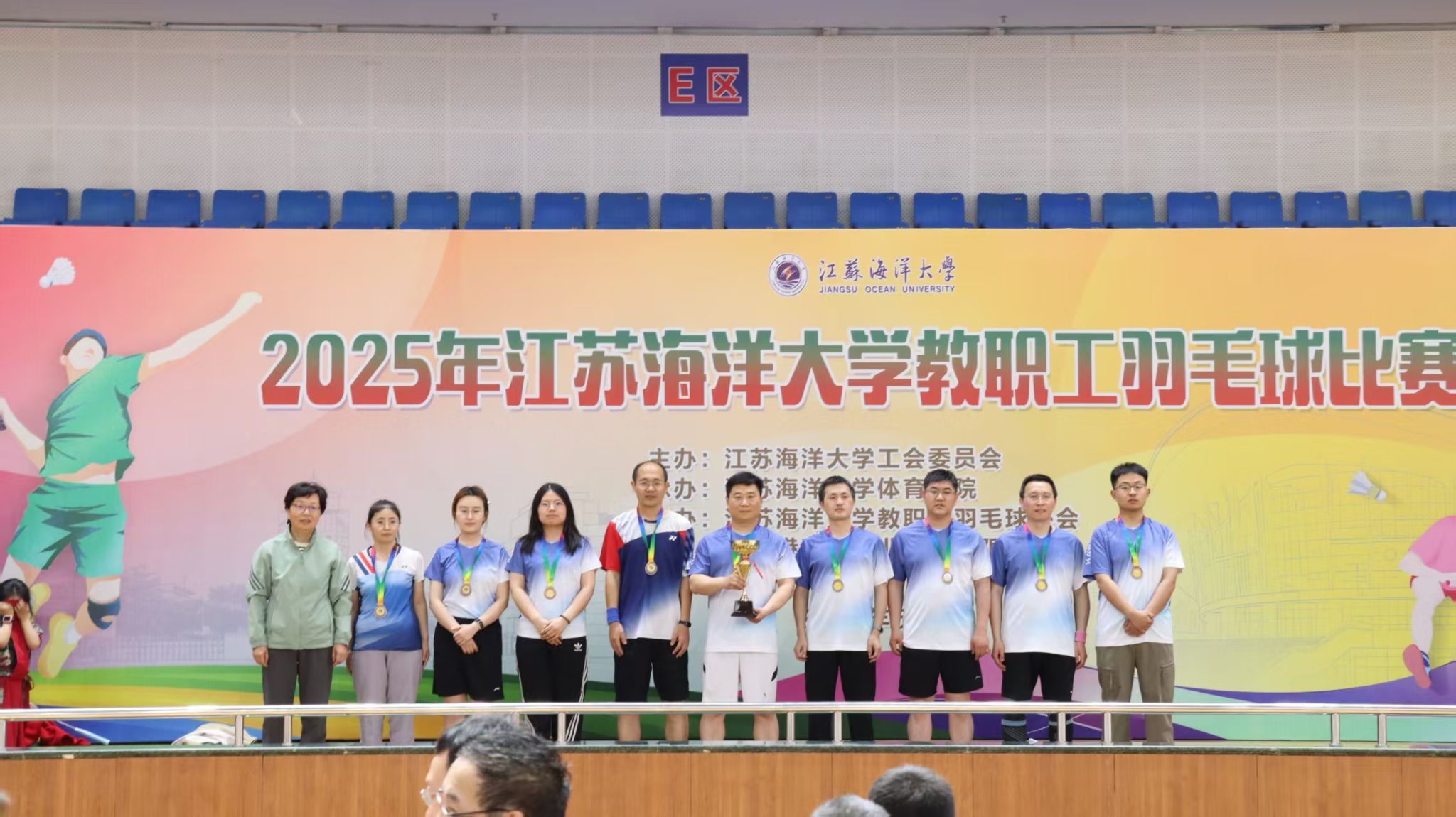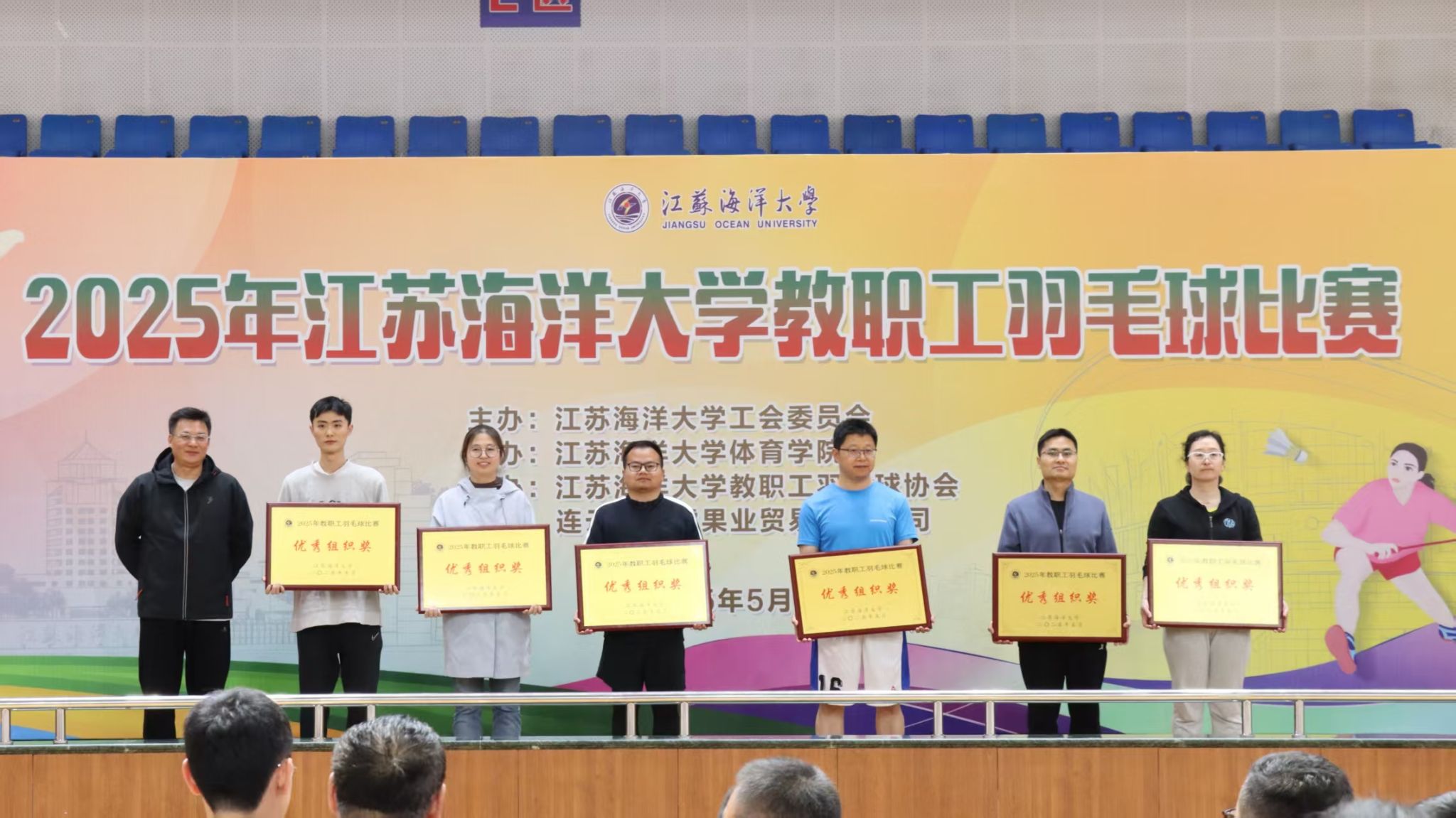 教职工羽毛球协会会长王勇为优秀组织奖单位颁奖。