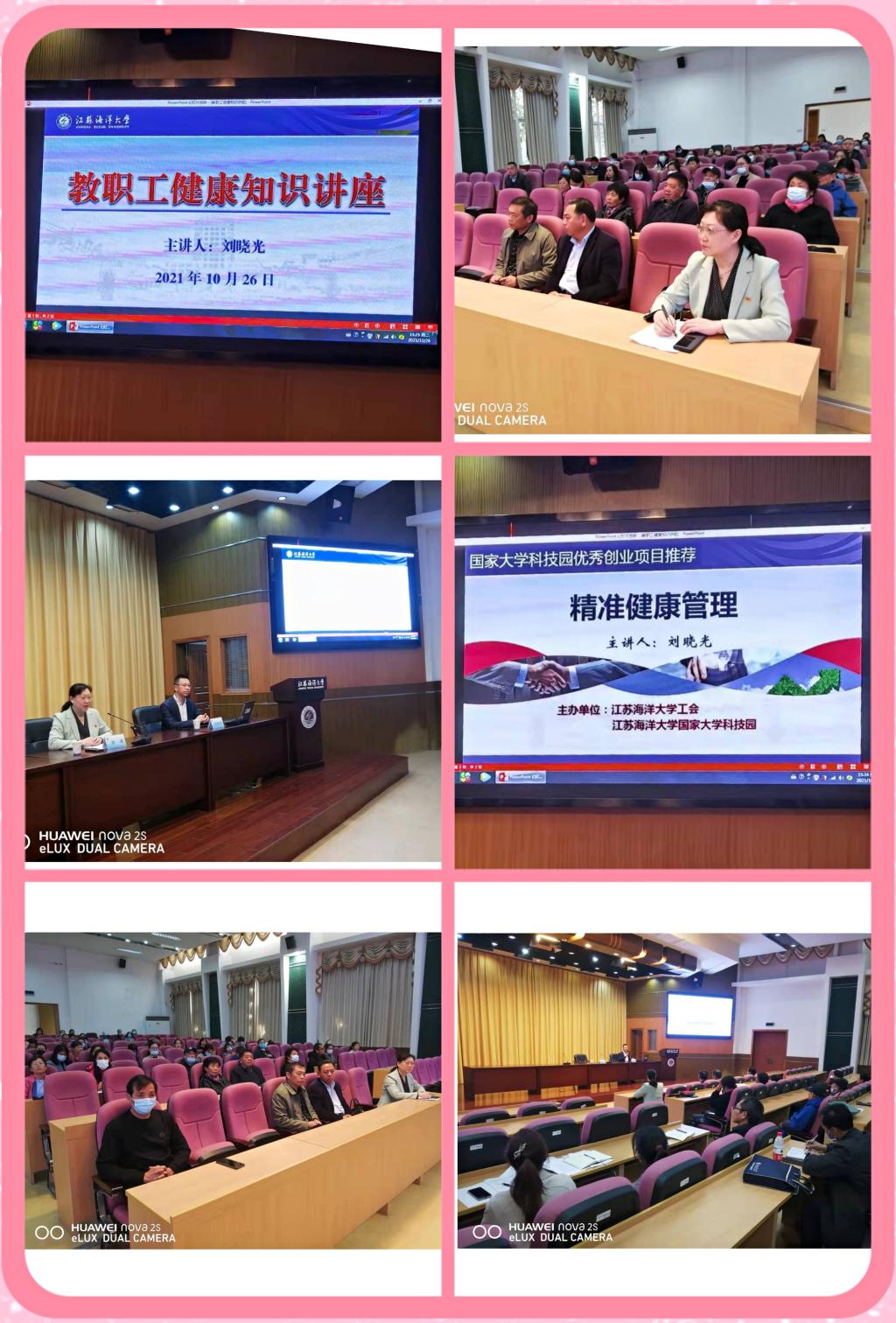 本次讲座是校工会与大学科技园共同举办的。讲座邀请到连云港市厅级干部首席保健专家、市保健协会会长刘晓光进行授课。刘会长围绕常见慢病的预防和保健,用图文并茂的PPT,生动典型的案例和通俗易懂的语言,从基本营养知识、合理饮食结构、日常生活常识以及饮食搭配要点等方面进行了详细的介绍。讲座后现场提问环节,刘会长耐心为教职工答疑解惑,并给出合理建议。