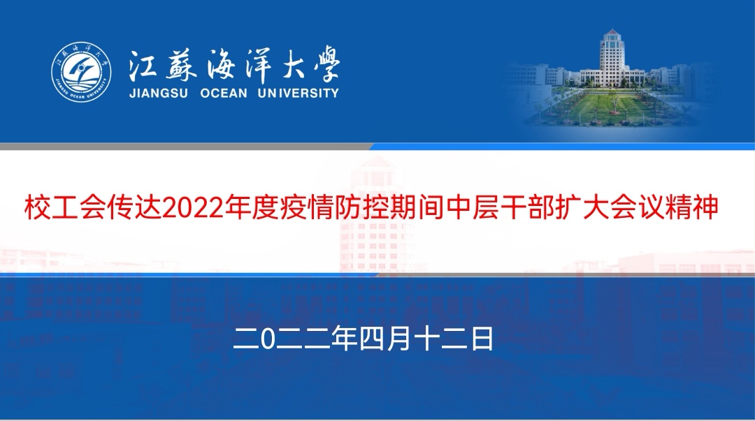 4月12日上午,校工会召开会议传达学校2022年疫情防控期间中层干部扩大会议精神,并就学校疫情防控工作进行学习培训,研究布置工会近期工作。会议由工会主席万洁主持,工会全体人员通过网络视频方式参加会议。