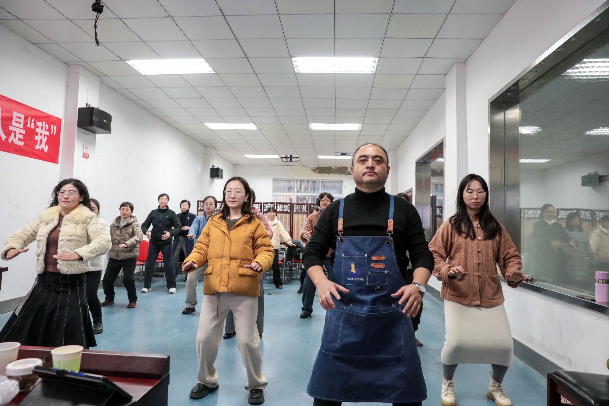 在浓郁的本草咖啡香气中,一段八段锦教学如约而至。胡教授带领老师们从动作分解到呼吸调整,再到养生理念,层层递进,帮助大家全面掌握八段锦的精髓。老师们以满腔的热情,投入到八段锦的学习之中,随着一招一式的起承转合,呼吸与动作的完美配合,压力得以释放,心灵归于平静,身心趋于平衡。