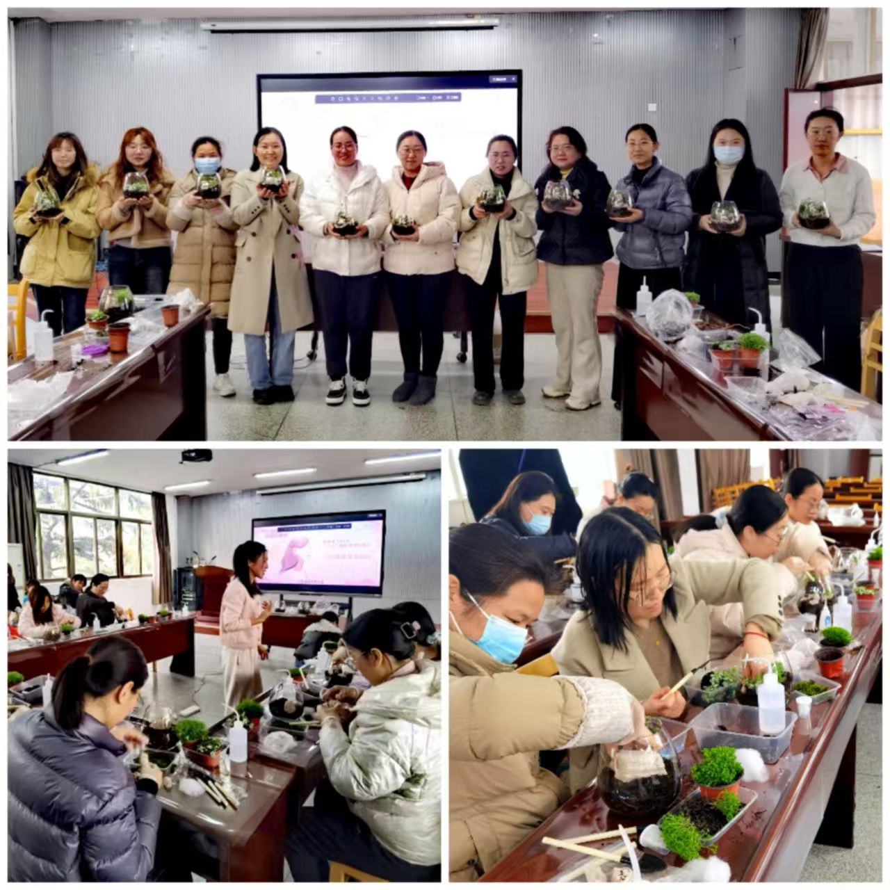 植物微景观DIY活动在一片绿意盎然中开始。活动现场,各种可爱的小型植物、精致的摆件、细腻的培养土等材料摆放整齐。女教职工们按照自己的创意和想象,将植物与摆件巧妙搭配,打造出一个个小巧玲珑、充满自然气息的植物微景观。把春天的一角请进屋内,让鲜氧与绿意填满日常,在这小小的植物微景观里,种下的不仅是植物,更是对生活的诗意期许。