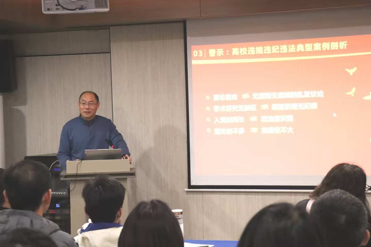 李春以《筑牢师德防线,涵养清风正气》为题,为全体学员作了一场深刻的廉政教育专题报告。报告从“一以贯之坚定不移全面从严治党”、“新时代对高校教师的要求与期望”、“高校违规违纪违法典型案例剖析”三个维度展开,系统阐述了全面从严治党的重要意义,分析了新时代师德师风建设的核心内涵,并通过典型案例警示,教育引导学员知敬畏、存戒惧、守底线。整场报告主题鲜明、内容翔实,有效提升了参会人员的廉洁自律意识与履职担当能力。