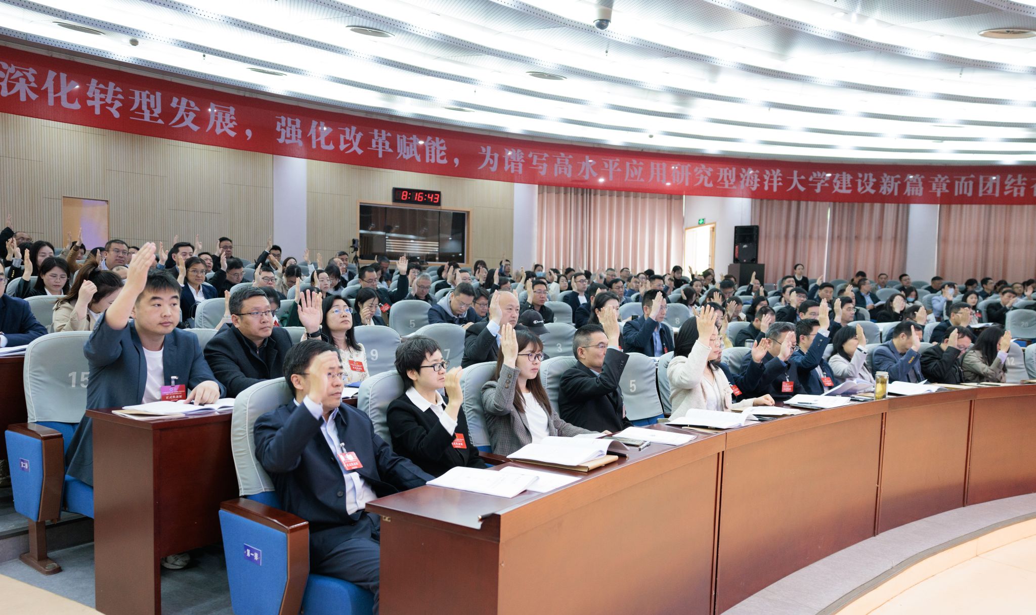 汤建以《向海图强开新局 决战申博建新功 全面开启“十五五”事业高质量发展新征程》为题作校长工作报告。报告全面回顾了2025年学校在党建引领、内涵建设、内部治理等方面取得的扎实进展。报告指出,过去一年,学校坚持以习近平新时代中国特色社会主义思想领航定向,深入贯彻党的二十大和二十届历次全会精神,坚守为党育人、为国育才初心使命,以实措强基固本,筑牢党建引领高地,以实干推动跃升,夯实内涵发展根基,以实招优化治理,办好师生关心实事,学校事业在高质量发展轨道上取得扎实进展、实现新的跃升。 报告指出,2026年是“十五五”规划开局之年,更是学校创建博士学位授予单位的决战之年。学校将坚守立德树人根本任务,一体推进教育、科技、人才协同发展,锚定“十五五”规划开局与博士学位授予单位建设两大中心任务,以深化改革激发内生动力,以重点突破牵引全局跃升,深入实施“四海五蓝”发展战略,以“四个聚焦”聚力攻坚,全面提升人才培养、学科科研、社会服务、师资建设、内部治理等工作质效,加快建设高水平应用研究型海洋大学,为服务海洋强国战略、助力区域高质量发展作出更大贡献。
